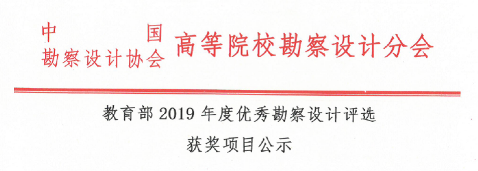近日,中國勘察設計協會高等院校勘察設計分會對教育部2019年度優秀勘察設計評選獲獎項目進行了公示,我院參評的“某工業園2.4萬噸/天污水處理廠”設計項目最終脫穎而出,名列其中,獲得優秀市政公用工程設計獎項。