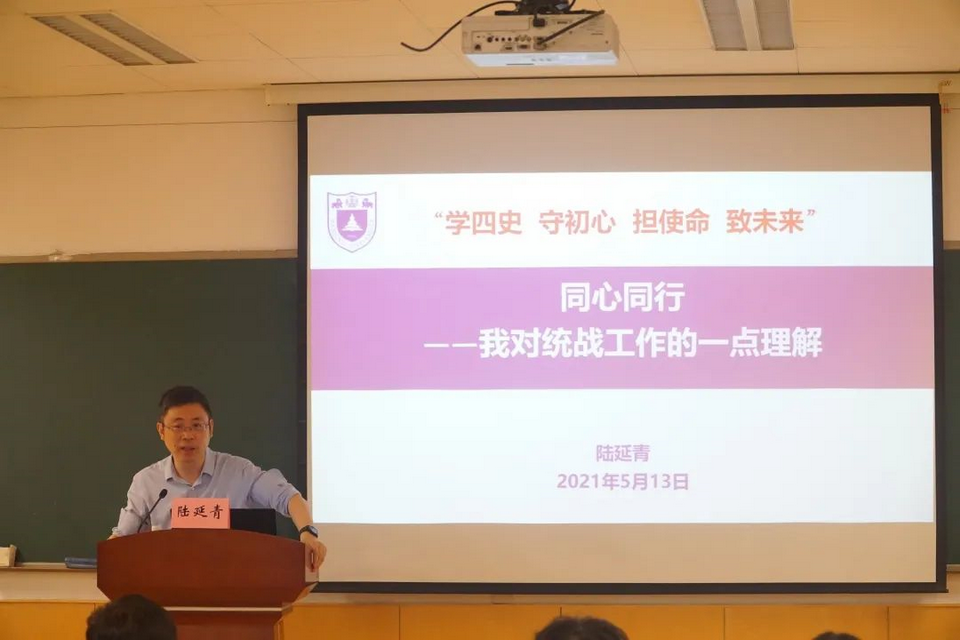 陸延青副校長以習(xí)近平總書記關(guān)于《深刻認(rèn)識做好新形勢下統(tǒng)戰(zhàn)工作的重大意義》的重要講話為切入點(diǎn),介紹了統(tǒng)戰(zhàn)工作的發(fā)展史、重要性、在我國發(fā)展中的積極作用以及南京大學(xué)統(tǒng)一戰(zhàn)線的基本情況,陸校長結(jié)合習(xí)近平總書記給復(fù)旦大學(xué)《共產(chǎn)黨宣言》展示館黨員志愿服務(wù)隊(duì)全體隊(duì)員的回信內(nèi)容,用“心有所信,方能行遠(yuǎn)”為青年黨員指明了前行方向。