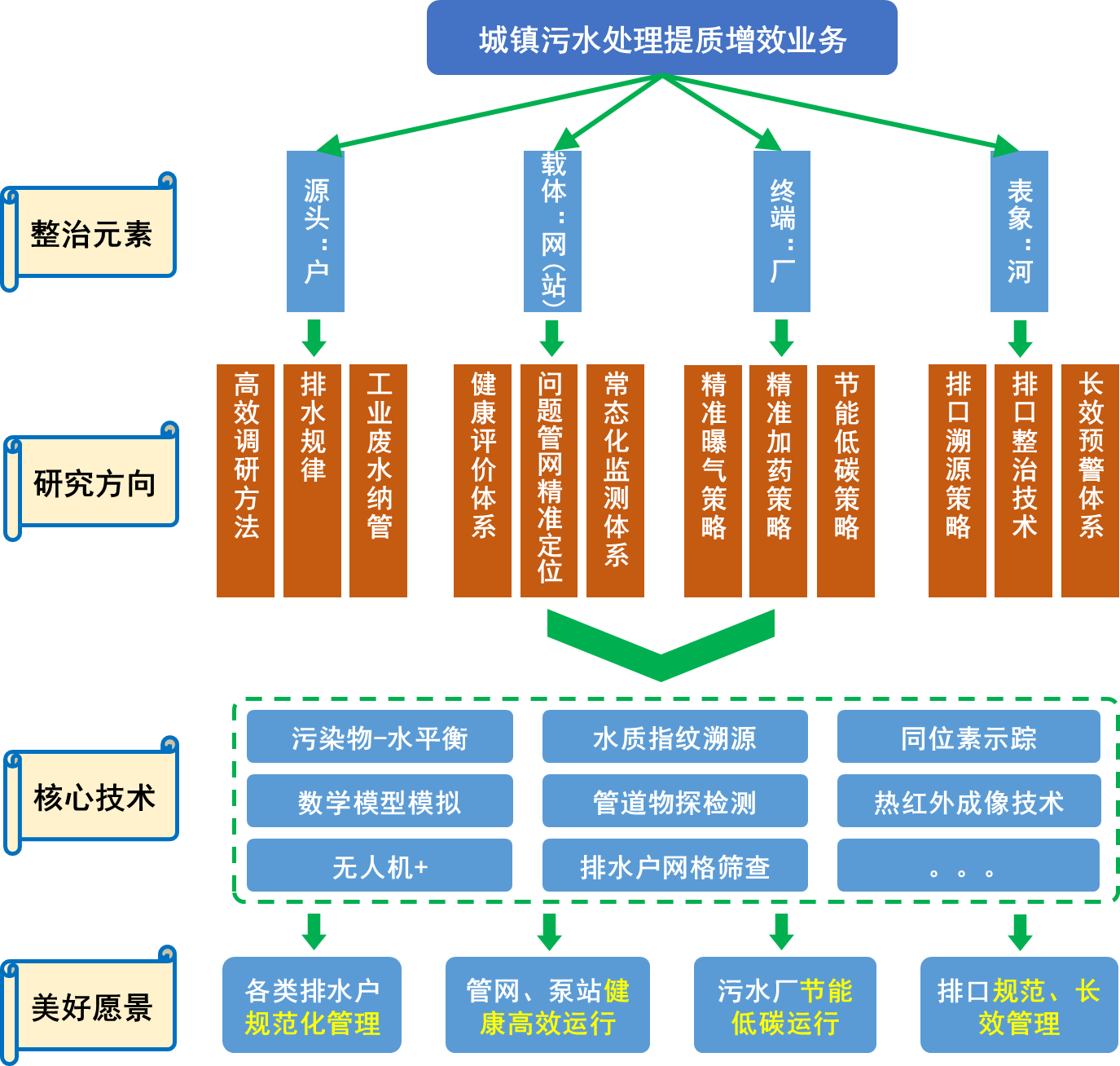 管網健康診斷修復研究中心圍繞“戶、網、廠、河”四大“整治元素”,對城鎮排水管網進行“綜合診斷+智慧監測”,形成了排水戶摸排、管網健康診斷、污水廠優化評估、河湖長效監管等技術體系,通過無人機+、網格化篩查手段,摸清排水戶底數;利用污染物-水平衡、同位素示蹤、模型模擬等方法定量分析外水入滲和雨污混錯接;基于管道物探檢測、排口水流特征、熱紅外成像技術,精準定位管網缺陷和污水直排,著力解決城鎮管網高水位、污水廠高負荷、進水低濃度、減排低效益的“兩高兩低”問題。