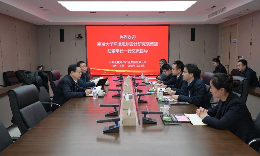 隨后,調研組趕赴山西,與山西低碳環保產業集團黨委書記、董事長邢六斤,總經理蘇德仁和投財務投資中心、科技研發中心、環保事業部等部門負責人座談交流,就推進業務深度合作、科技成果轉化和產業投資等方面初步建立互動交流機制,為進一步深化合作奠定了基礎。